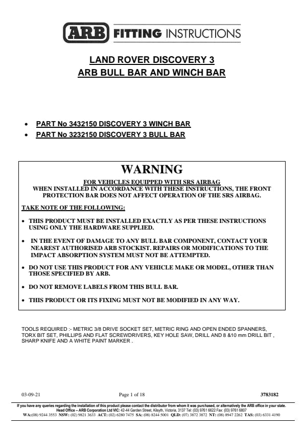 Vehicle specific fitting kit required to mount ARB Bumper to the vehicle chassis. This fitting kit has been specially designed to work with this vehicle's safety systems.