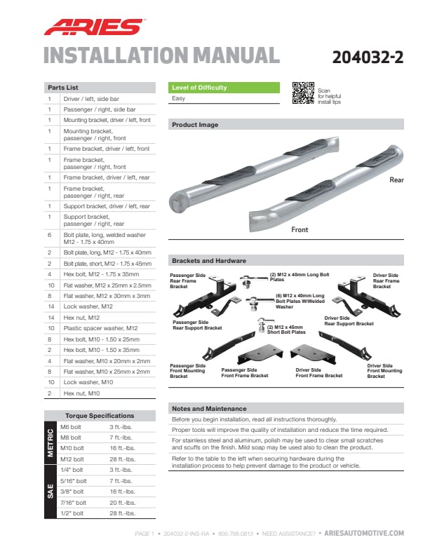 ARIES 3 in. side bars add a custom look and dependable footing to your truck, Jeep or SUV. They feature a classic style, a strong design and non-skid step pads. ARIES nerf bars are all made vehicle-specific for a custom, no-drill fit, and they are available in multiple finish options. This set of nerf bars is constructed from 304 stainless steel with a polished finish. Our 304 stainless steel is a true stainless with high nickel content, offering better corrosion resistance and a long-lasting finish. The polish is a triple application, resulting in a mirror-like shine to complement your vehicle. ARIES 3 in. round side bars also come with high-strength steel brackets and non-skid step pads. The mounting brackets as well as the side bars and step pads are custom-designed for specific makes and models to allow the nerf bars to contour to the lines of your vehicle. This ensures easy, no-drill installation and the strength necessary to provide solid footing. This particular set of custom nerf bars fits specific years of the Chevy Equinox and GMC Terrain (see application info to verify fitment). ARIES 3 in. round side bars also come with non-skid step pads made of polypropylene. These wide, custom-positioned step pads feature a textured pattern and cover a wide portion of the tubes to be more comfortable and high-traction, even in wet conditions.