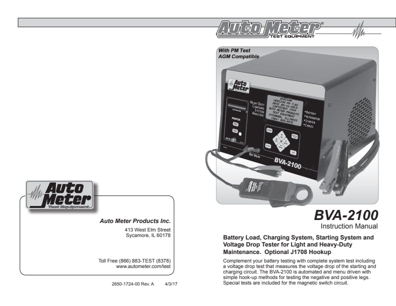 The BVA-2100 is the ultimate electrical system tester specifically designed for the Heavy Duty market. Through the use of state of the art digital circuitry and a 400 amp True Load system system, the BVA-2100 delivers the words most accurate, relaible, and fastest testing results for batteries, charging systems, starting systems, and voltage drop testing for heavy duty applications.