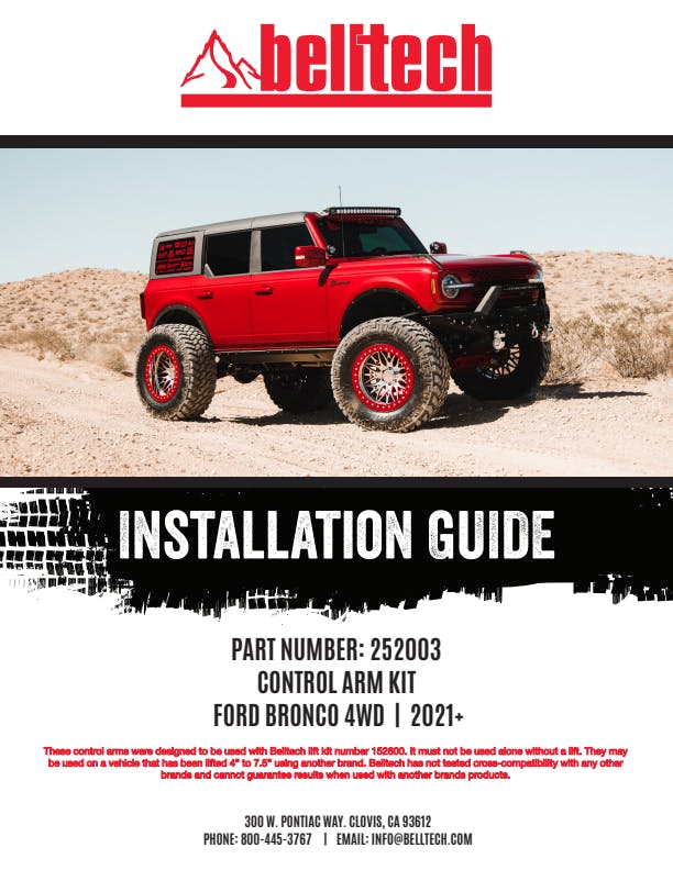 A skewed suspension geometry can take the fun out of your lifted vehicle. Our angle correction control arms were developed to improve camber, return proper ball joint angles, maximize suspension travel, and articulation. Designed specifically for the 2021+ Ford Bronco, our control arms are constructed of forged aluminum and fitted with quality OEM style bushings. The result is a smoother, safer ride with improved handling.