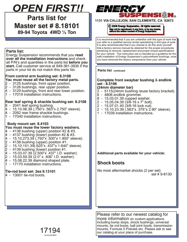 Energy's Hyper-Flex(TM) is superior performance polyurethane which has proven itself under the most demanding conditions on the race track, off-road and street performance driving, Hyper-Flex(TM) components do not wear or deteriorate from exposure to undercar chemicals such as oils and coolants and withstand atmospheric conditions like UV exposure and pollutants. Impervious to these elements, Energy's Hyper-Flex(TM) components are a great value. Not only will it outlast rubber 5 to 1 but are a cost effective performance improvement for your car or truck. Whether domestic or import, front, rear or 4WD, old or new, your vehicle will achieve that level of performance that has made Energy Suspension the most asked-for name in performance polyurethane components. All Hyper-Flex(TM) components are proudly Made in America and are available in red or black.