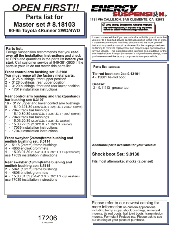 Energy's Hyper-Flex(TM) is superior performance polyurethane which has proven itself under the most demanding conditions on the race track, off-road and street performance driving, Hyper-Flex(TM) components do not wear or deteriorate from exposure to undercar chemicals such as oils and coolants and withstand atmospheric conditions like UV exposure and pollutants. Impervious to these elements, Energy's Hyper-Flex(TM) components are a great value. Not only will it outlast rubber 5 to 1 but are a cost effective performance improvement for your car or truck. Whether domestic or import, front, rear or 4WD, old or new, your vehicle will achieve that level of performance that has made Energy Suspension the most asked-for name in performance polyurethane components. All Hyper-Flex(TM) components are proudly Made in America and are available in red or black.