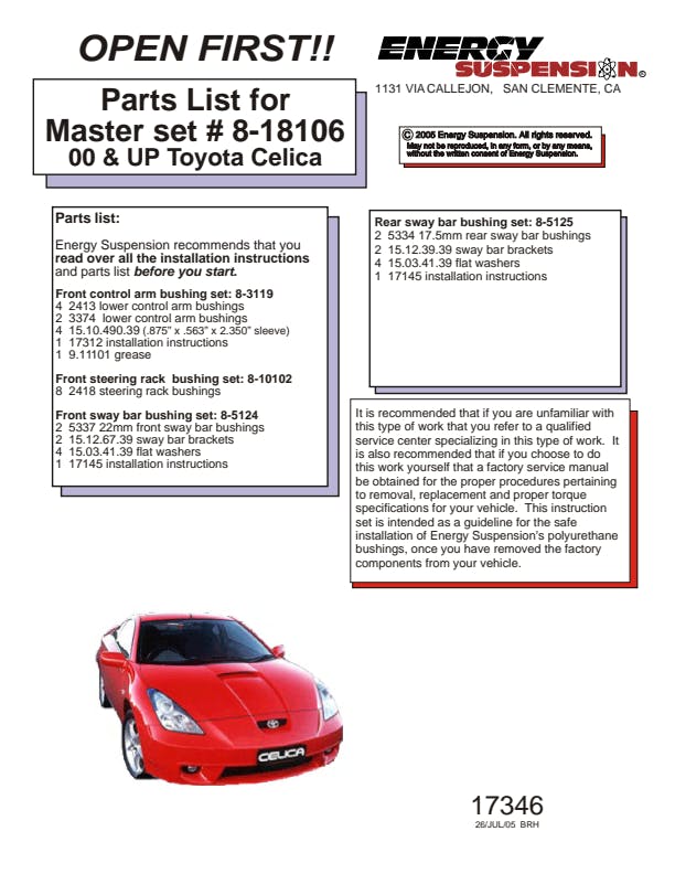 Energy's Hyper-Flex(TM) is superior performance polyurethane which has proven itself under the most demanding conditions on the race track, off-road and street performance driving, Hyper-Flex(TM) components do not wear or deteriorate from exposure to undercar chemicals such as oils and coolants and withstand atmospheric conditions like UV exposure and pollutants. Impervious to these elements, Energy's Hyper-Flex(TM) components are a great value. Not only will it outlast rubber 5 to 1 but are a cost effective performance improvement for your car or truck. Whether domestic or import, front, rear or 4WD, old or new, your vehicle will achieve that level of performance that has made Energy Suspension the most asked-for name in performance polyurethane components. All Hyper-Flex(TM) components are proudly Made in America and are available in red or black.