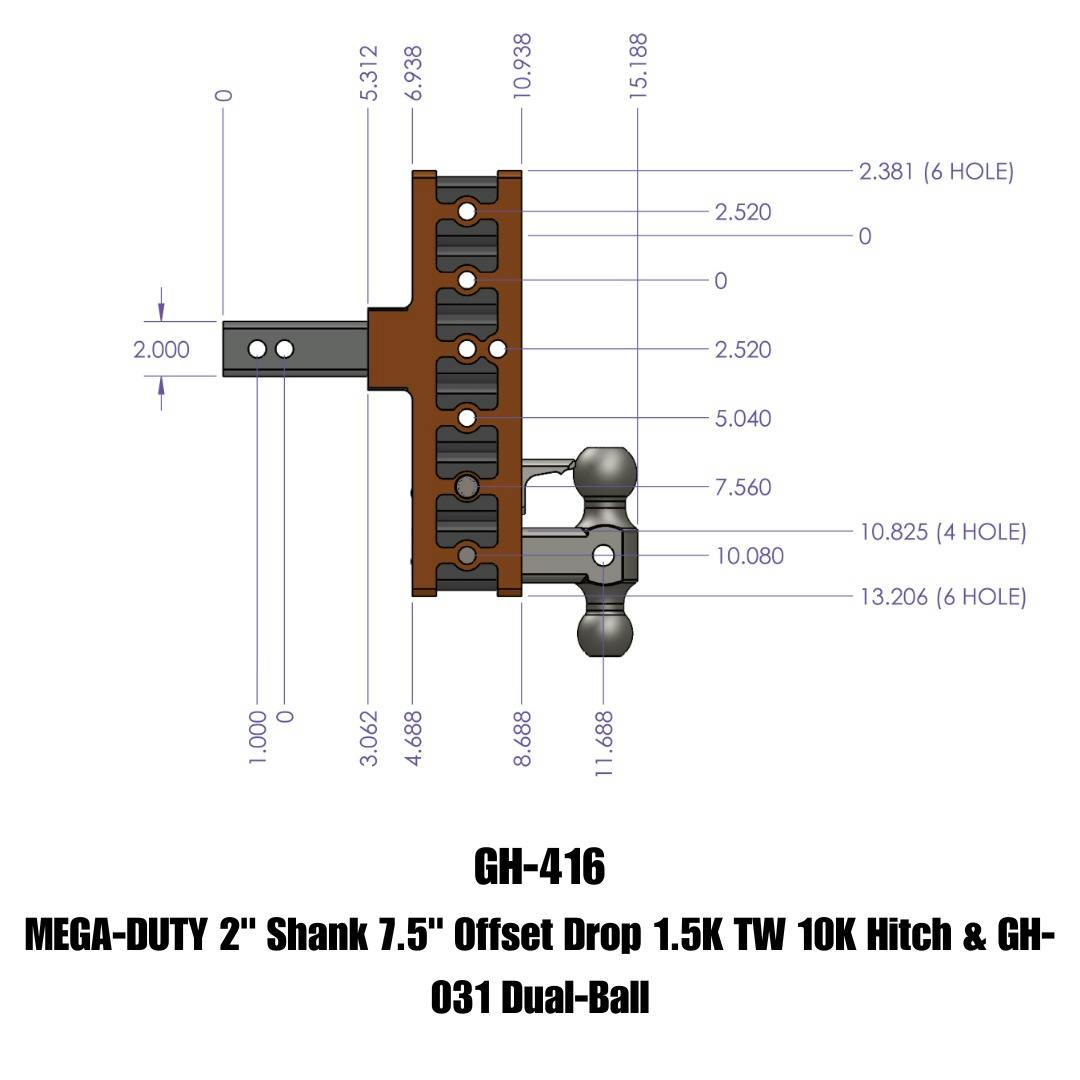MEGA-DUTY 2" Offset Shank 5" Rise,7.5" Drop 1.5K TW 10K Hitch & GH-031 Dual-Ball