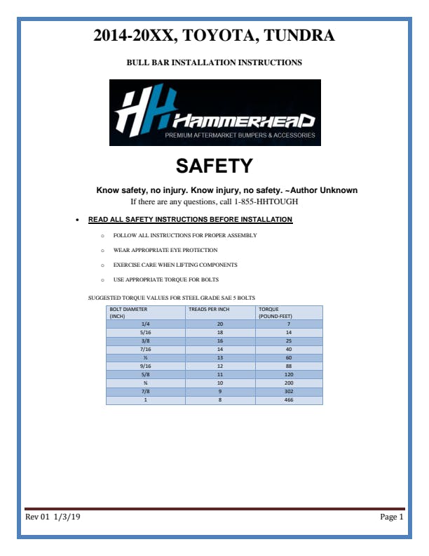 Hammerhead Armor's Bull Bar Is A Front-End Light Bar Designed For Trucks. It Is Made With 0.120 Inch Plate Steel. It Mounts Utilizing Existing Vehicle Mounting Points And Installation Does Not Require Any Drilling To The Vehicle Frame.