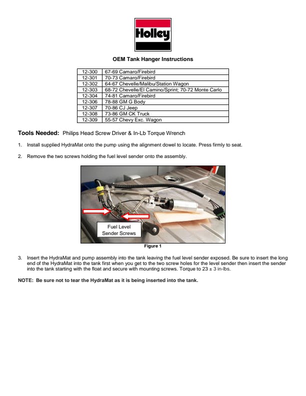 Holley is excited to introduce our Holley OE style fuel tank modules that are designed as a direct replacement for your factory pick-up and sending unit. There is no need for modifications and you will not have to replace your fuel tank. You can even retain the factory fuel hard line, just connect the outlet of the pump module to the hard line on your vehicle with some EFI rated fuel hose and hose clamps such as the Earls Vapor Guard.