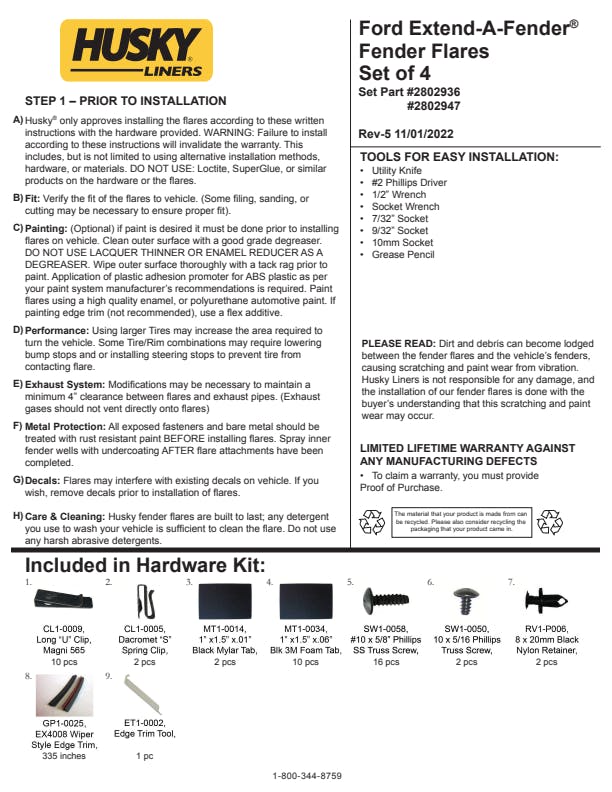 - Extend-A-Fender(R) Flares are covered by Husky Liners Limited Lifetime Warranty, featuring Husky's legendary durability, so they're built to last. Proudly made in the USA with global materials.