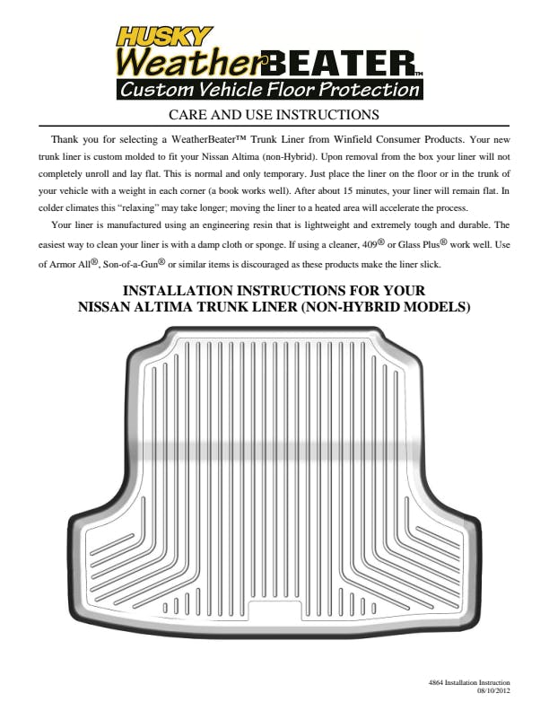 - WeatherBeater(TM) Liners offer protection that extends all the way to your rear seats. So go ahead, lift the seats and leave them up, load after load. Husky's got your floors, and your back, no matter what the road brings your way.