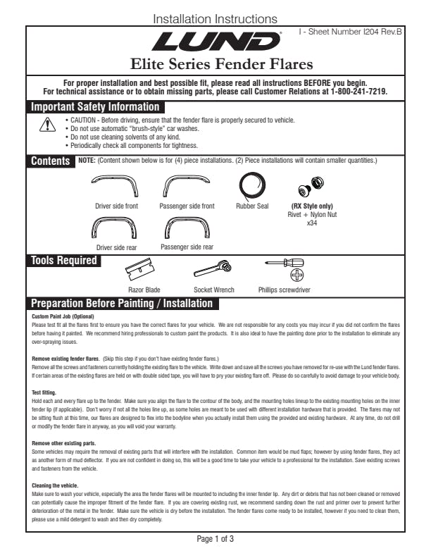 Lund Elite SX-Sport Style Fender Flares add style, protection and performance. Fender flares come in a variety of styles, from low-profile to big and bold featuring a textured or smooth paint-ready finish. The Elite Series Fender Flares are made with Tri-Flex ABS thermoplastic material to allow for maximum durability. This provides a dense, hard and scratch-resistant surface, flexible enough to bend without breaking.
