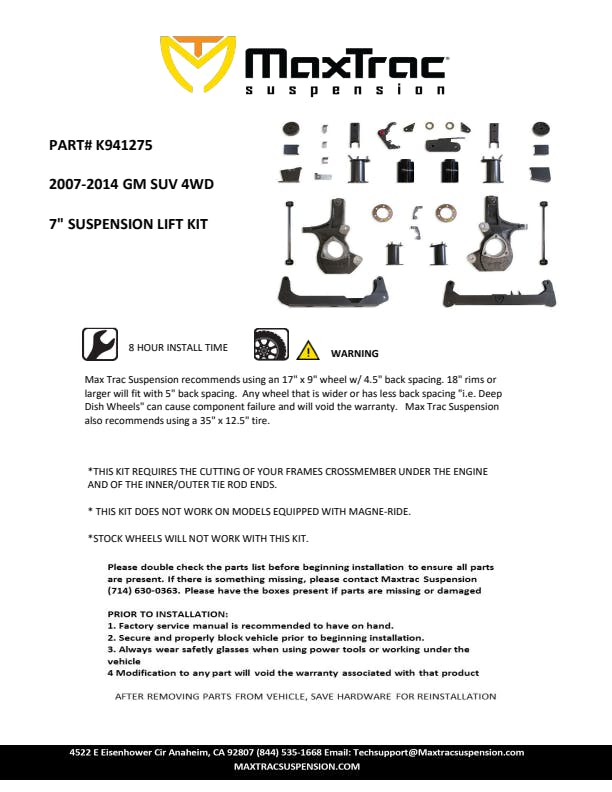 MAX TRAC SUSPENSION'S PART# 941370-5 IS A BOX KIT (BOX 3) INCLUDING DIFF DROP BRACKETS, SWAY BAR BRACKETS, STRUT SPACERS, AXLE SPACERS, BRAKE LINE BRACKETS, & HARDWARE