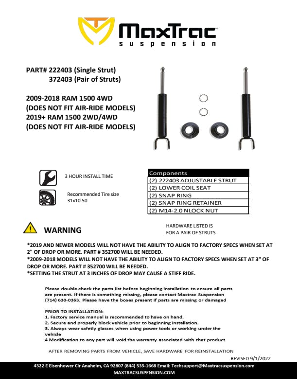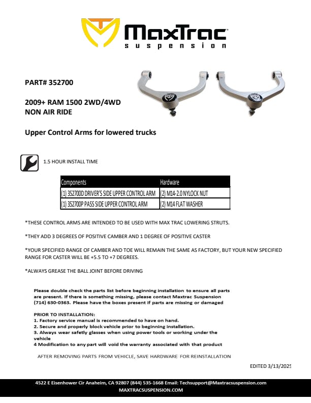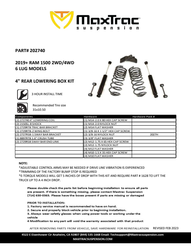 MAX TRAC SUSPENSION'S KIT# K332724A IS A 2"/4" LOWERING KIT INCLUDING FRONT STRUTS, FRONT UPPER CONTROL ARMS, REAR COILS, TRAC BAR BRACKET, SWAY BAR END LINKS & REAR SHOCKS