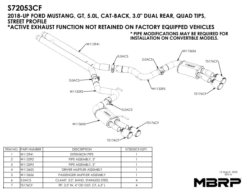 4in. OD CF Tips Included "Non Active Exhaust only". Active Exhaust Function NOT Retained on Factory Equipped Vehicles. Pipe Modifications May Be Required For Installation on Convertible Models.