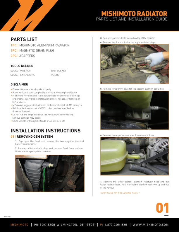 Mishimoto Radiator-- Magnetic Drain Plug--(4) Transmission Adapters--Mishimoto Lifetime Warranty |