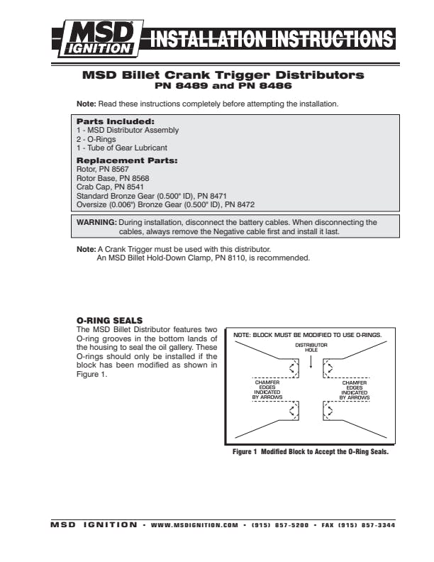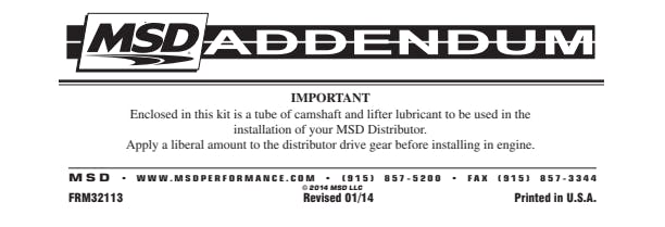 - Must be used with an MSD Crank Trigger and MSD Ignition Control