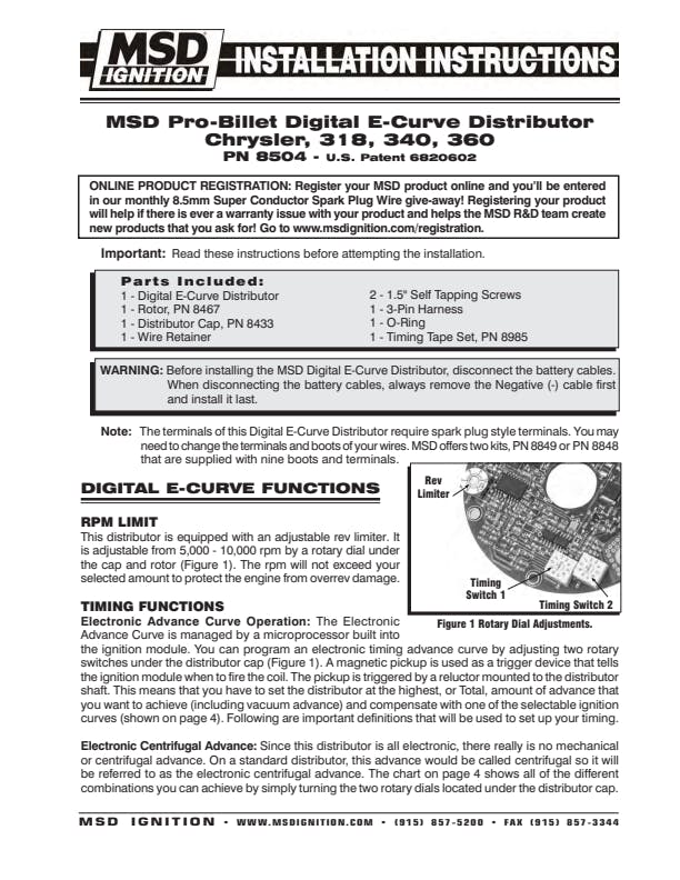 That's right, no more springs or stop bushings to change. A new digital module lets you select from nearly 100 different advance curves, including a vacuum advance! Simply remove the cap and rotor to access the rotary dials and select a curve to match your application. You can also set an rpm limit that will protect your engine from over-rev damage caused by a missed shift or driveline failure. This limit is adjustable from 5,000-10,000 rpm.