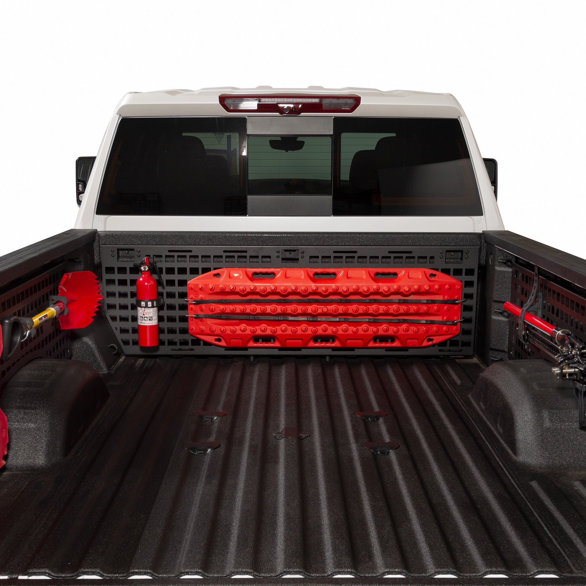 Secure your cargo in the back of your truck bed with this next level one of a kind truck bed storage organizing system. New from Putco are the Molle Panel inside truck bed panels system. This amazing cargo storage system is perfect for latching down nearly anything you want to secure in place like Molle bag, trail gear, construction gear, jacks, or anything your heart desires. Available for the bulkhead, side bed and tailgate area. Choose from getting the entire set or just getting one side. Great for Overlanding pickup trucks or work trucks to hang and organize gear, tools and more. These truck bedside organizers called molle panels are great for storing your gear and organizing your truck bed whether you use your pickup for work or play. Plus the are a must-have for the overland truck for your next outdoor adventure.Constructed out of durable CNC cut 10 gauge aluminum that is finished with a mini-textured black powder-coat. This American made panel system works with most industry-leading mounting accessories like Quickfist, Kolpin, Molle, and much more. Also, this come is compatible with most soft roll-up and hard fold cover on the market.Installing a Molle panel is simple with no drilling or cutting of any kind and its custom design for your year, make and model allows you to use your OEM tie-down area and other standard OEM features of your truck. Each panel is backed by a three-year warranty. So if you are tired of your cargo rolling around and want it secured in place the Putco Molle Panels are for you.