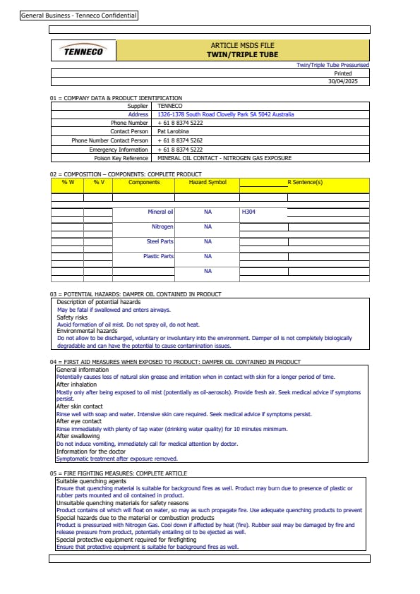 | SDS Sheet Number |