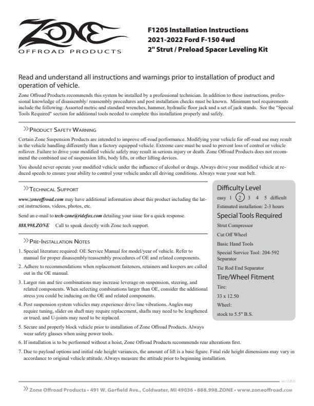 **Some trucks with a 2 piece drive shaft may have a recall from Ford regarding the rear driveshaft. (Safety Recall 21S25) Due to the recall procedure, ZONE recommends to have this performed prior to installing the lift.**
