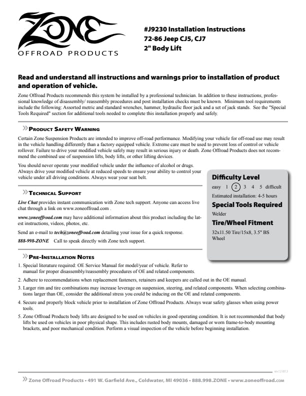 - Complete and easy to follow instructions make this body lift an easy do-it-yourself install